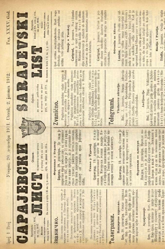 Sarajevski list / odgovorni urednik Ivan V. PopovićSarajevski list / odgovorni urednik Ivan V. Popović