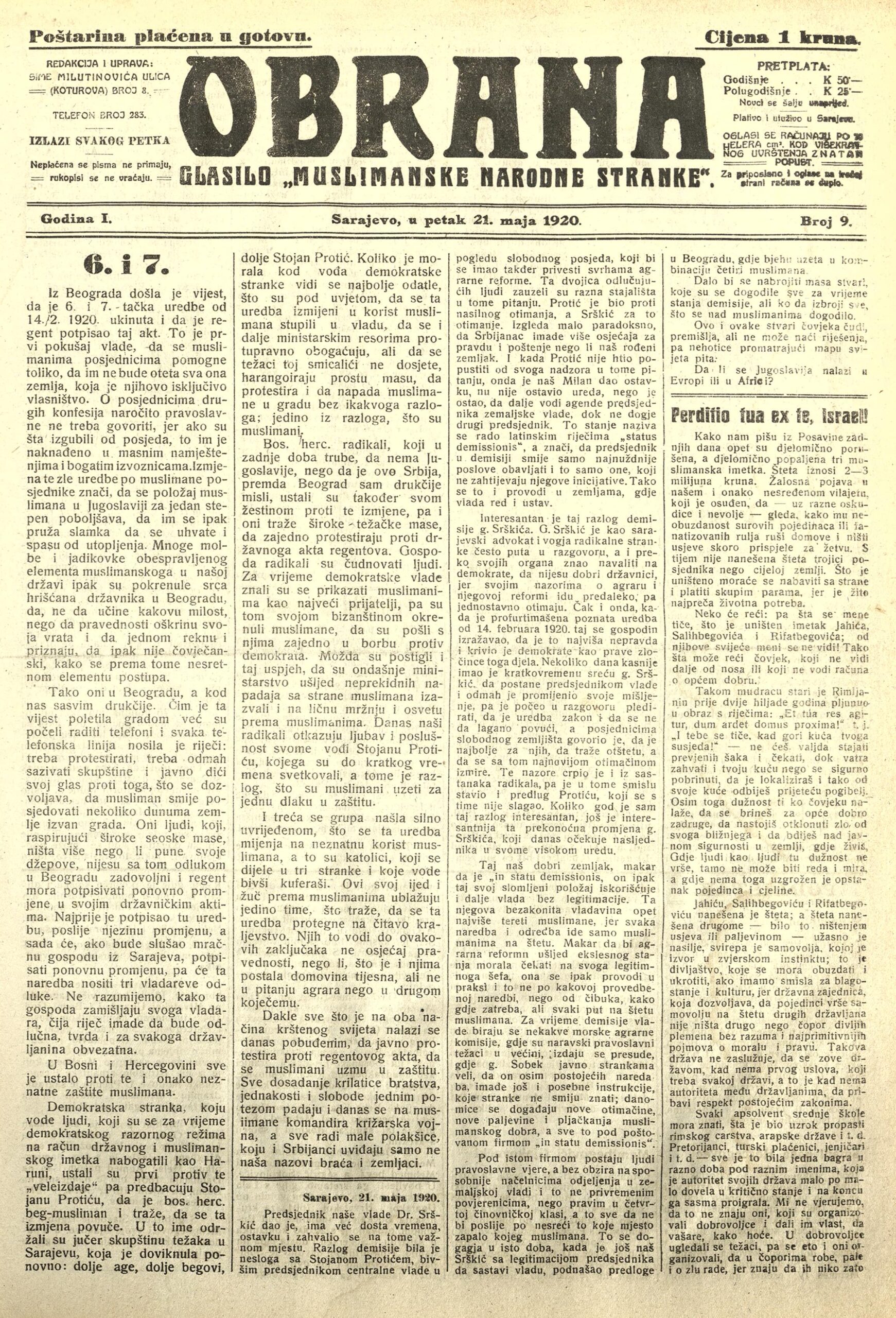 Obrana : glasilo Muslimanske narodne stranke God. I, br. 9Obrana : glasilo Muslimanske narodne stranke God. I, br. 9