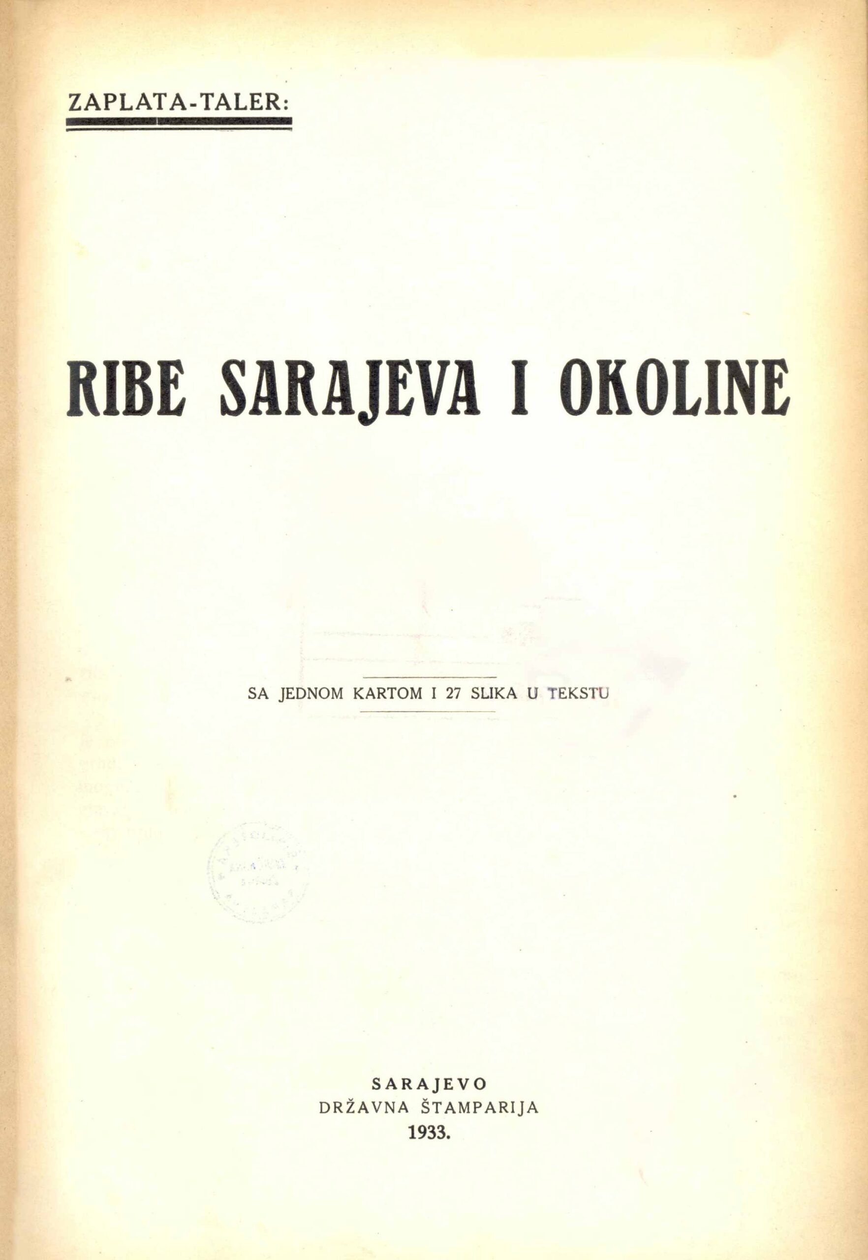 Ribe Sarajeva i okoline : sa jednom kartom i 27 slika u tekstu / napisali Rudolf Zaplata i Zdravko TalerRibe Sarajeva i okoline : sa jednom kartom i 27 slika u tekstu / napisali Rudolf Zaplata i Zdravko Taler
